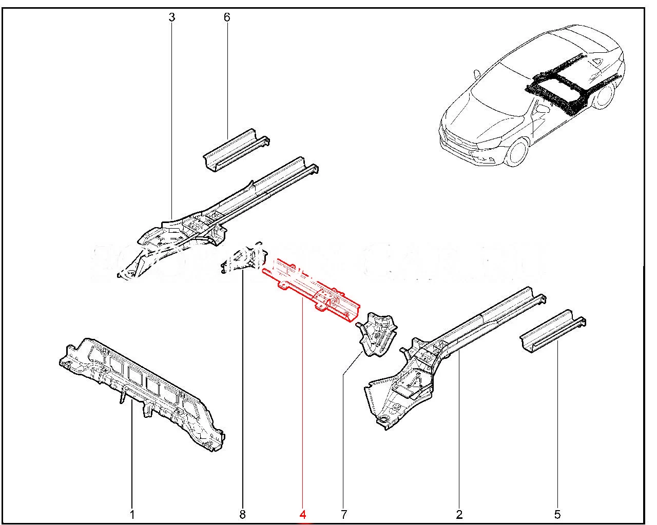 Штатная поперечина пола средняя в сборе (катафорез) для Лада Веста.