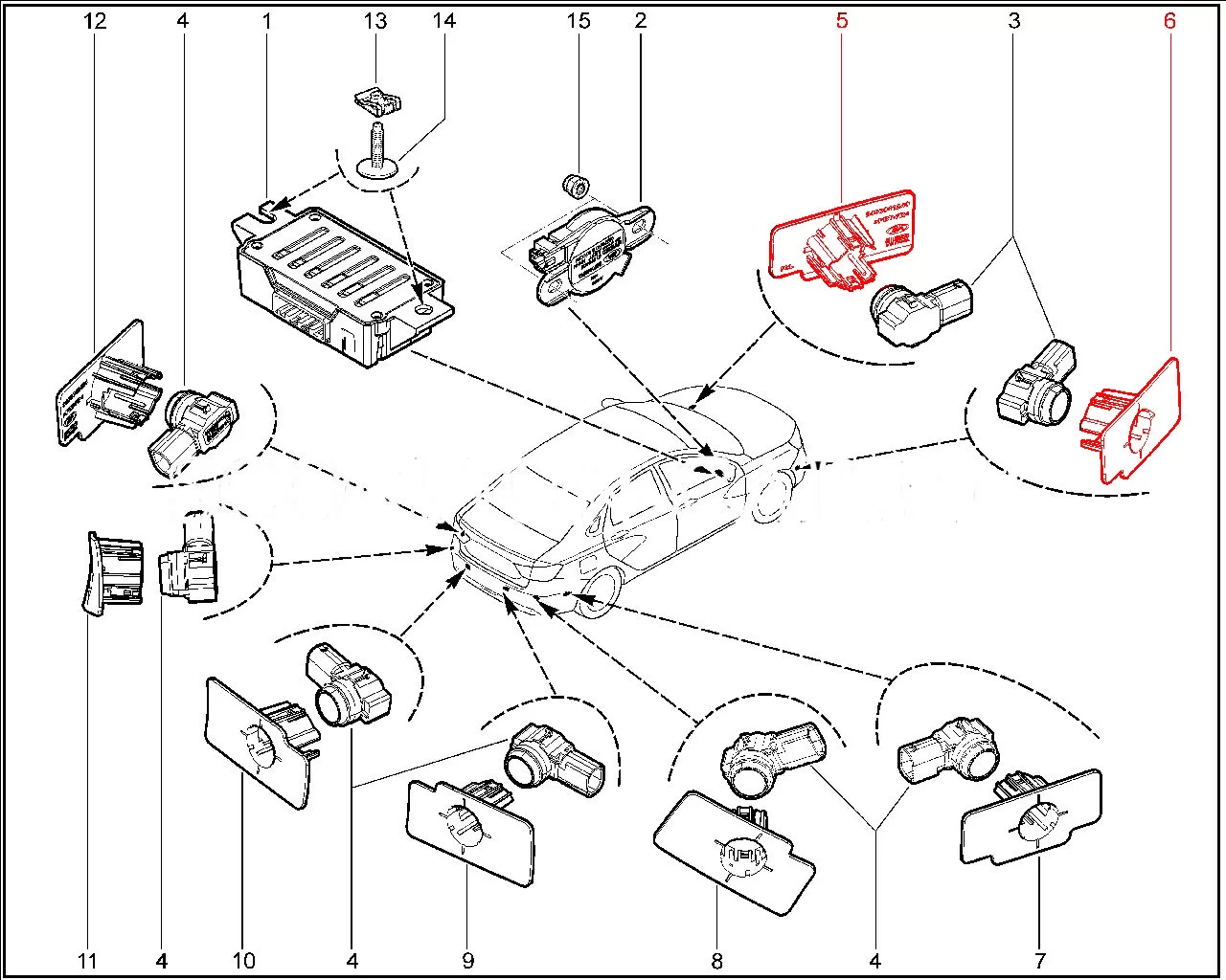 Штатный держатель датчика системы парковки передний боковой для нового поколения Лада Веста.