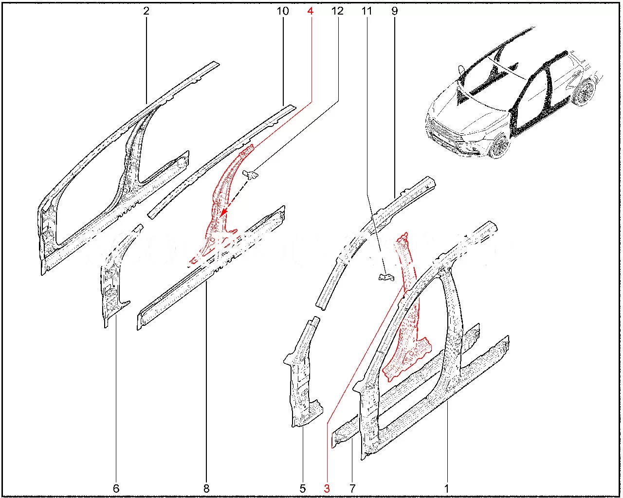 Штатный усилитель центральной стойки боковины в сборе для Лада Веста.