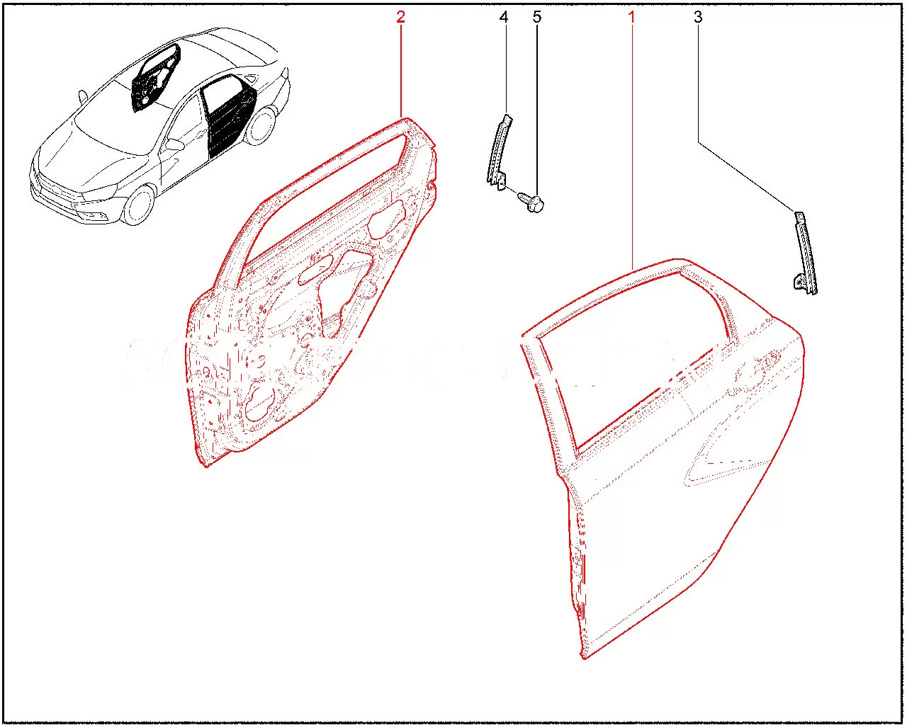 Штатная дверь задняя в сборе нового образца для Лада Веста седан.