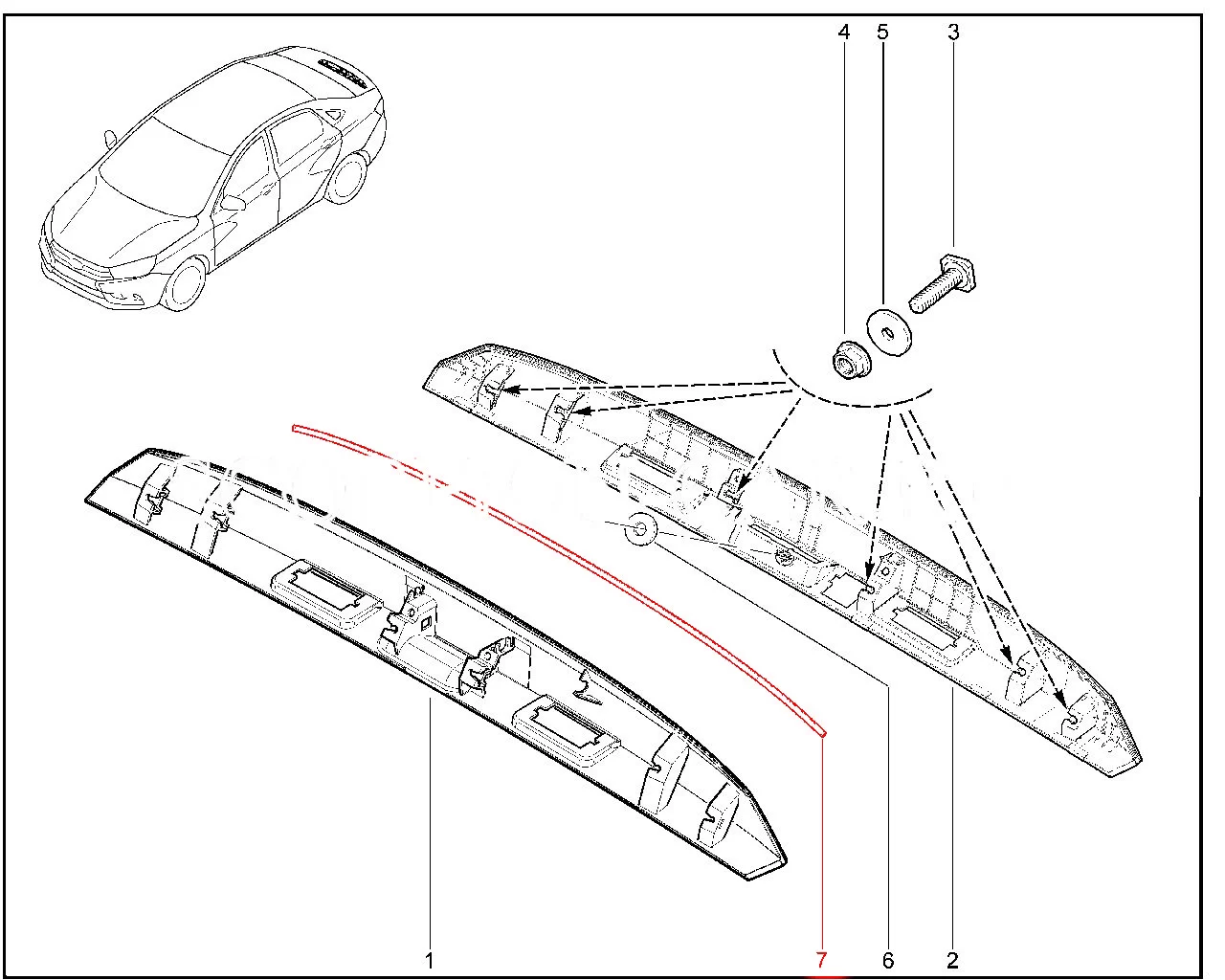 Штатный профиль дистанциирующий накладки крышки багажника для Лада Веста седан.