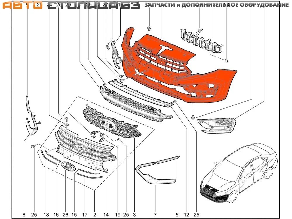 Стоимость указана только за 1 деталь, непосредственно бампер (см. схему). Бампер предназначен под покраску.