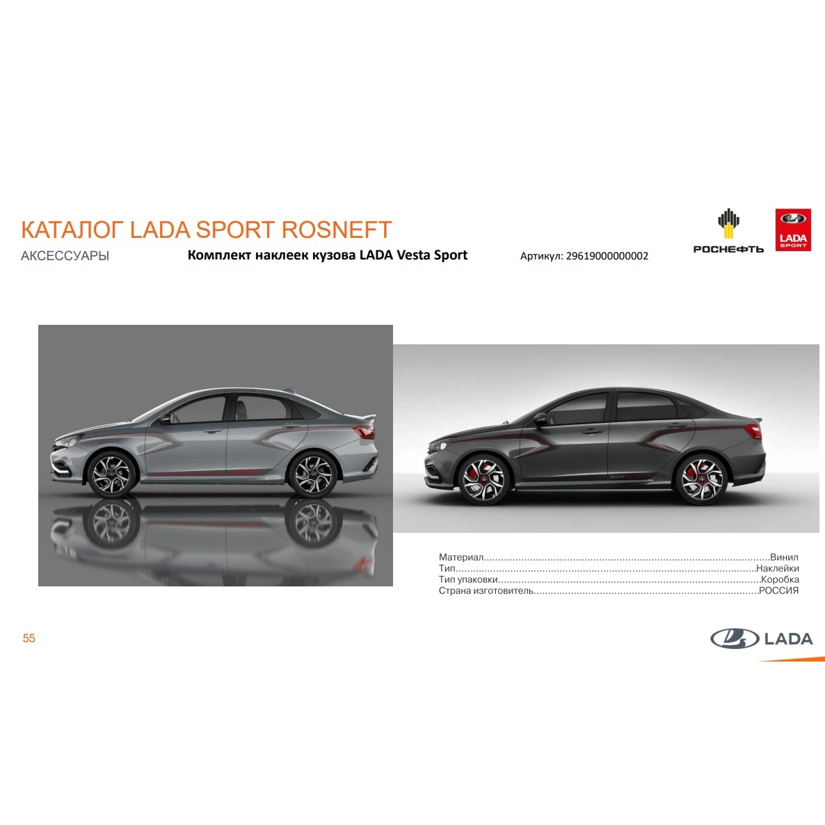 Штатный оригинальный комплект наклеек кузова для Lada Vesta Sport.
