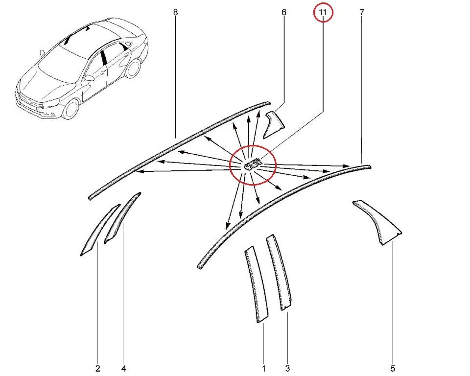 Держатель молдинга (облицовки сточного желоба) крыши для автомобиля Лада Веста, Iskra. Стоимость указана за 1 штуку.