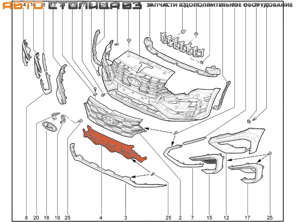 Оригинальная заводская нижняя решетка бампера для автомобилей Лада Веста NG с 2022 года (седан Кросс, универсал Кросс).