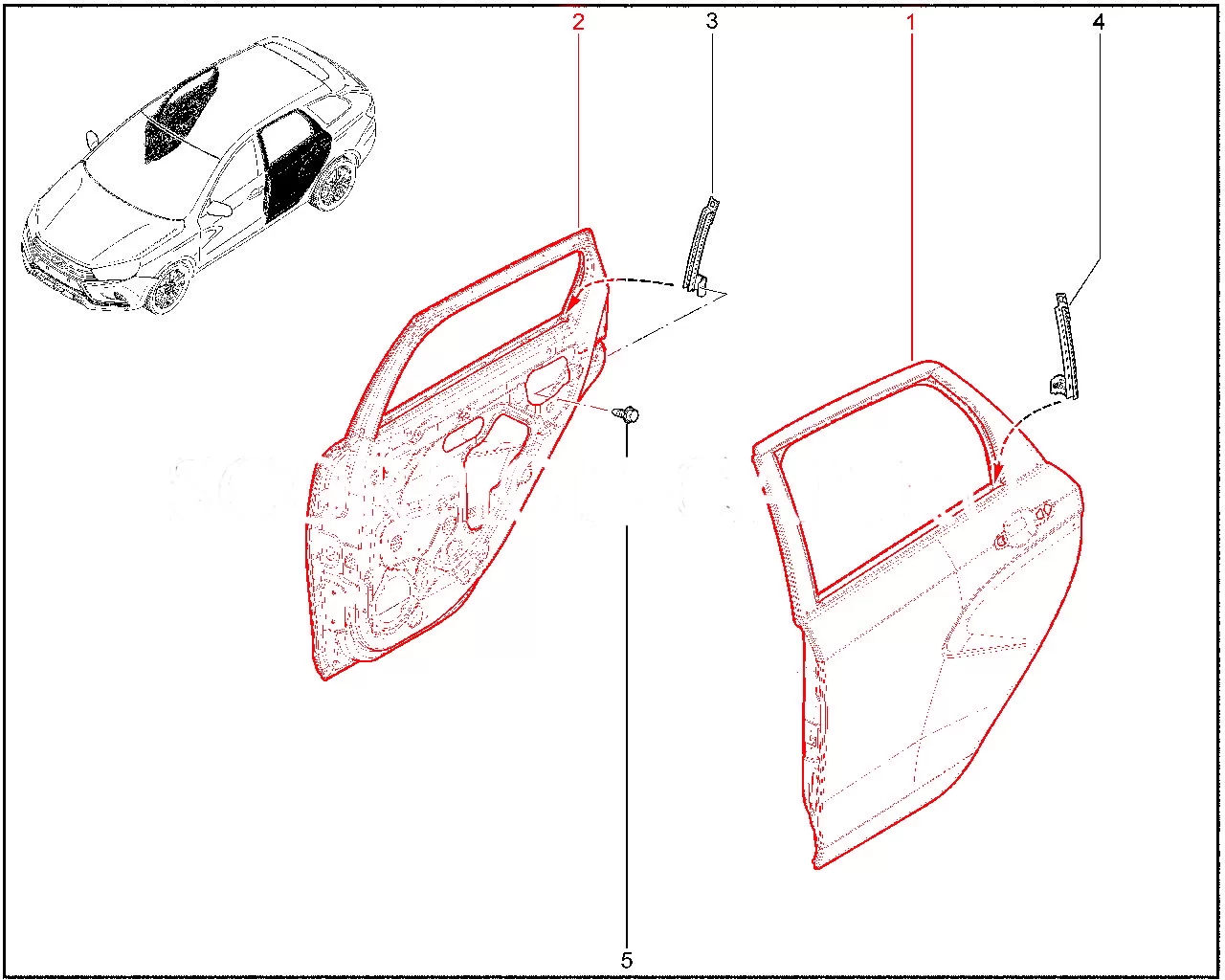 Штатная оригинальная дверь задняя в сборе для Lada Vesta SW Cross.
