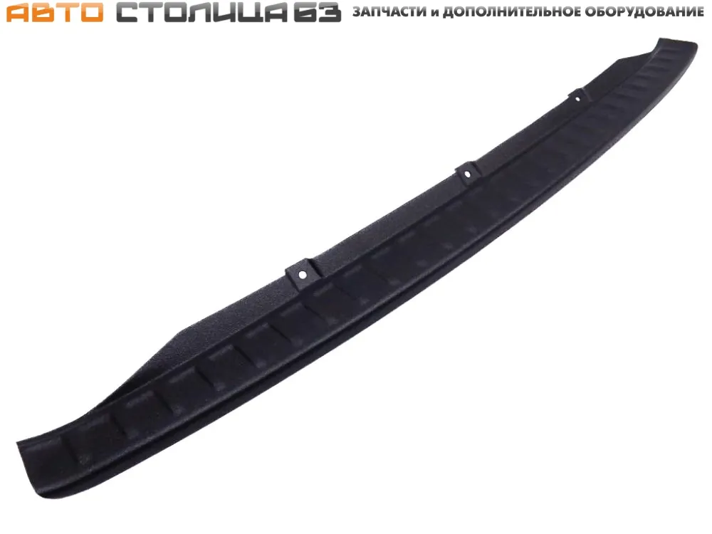 Защита верхней части заднего бампера автомобиля от царапин и сколов при погрузке и выгрузке. Установка производится через штатные болты крепления бампера на двухстороннюю ленту 3М (она уже нанесена на накладку).