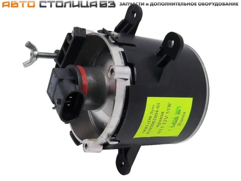 В комплект поставки входит корпус противотуманной фары со стеклом, разъем подключения, лампа H11 (12V, 55W).