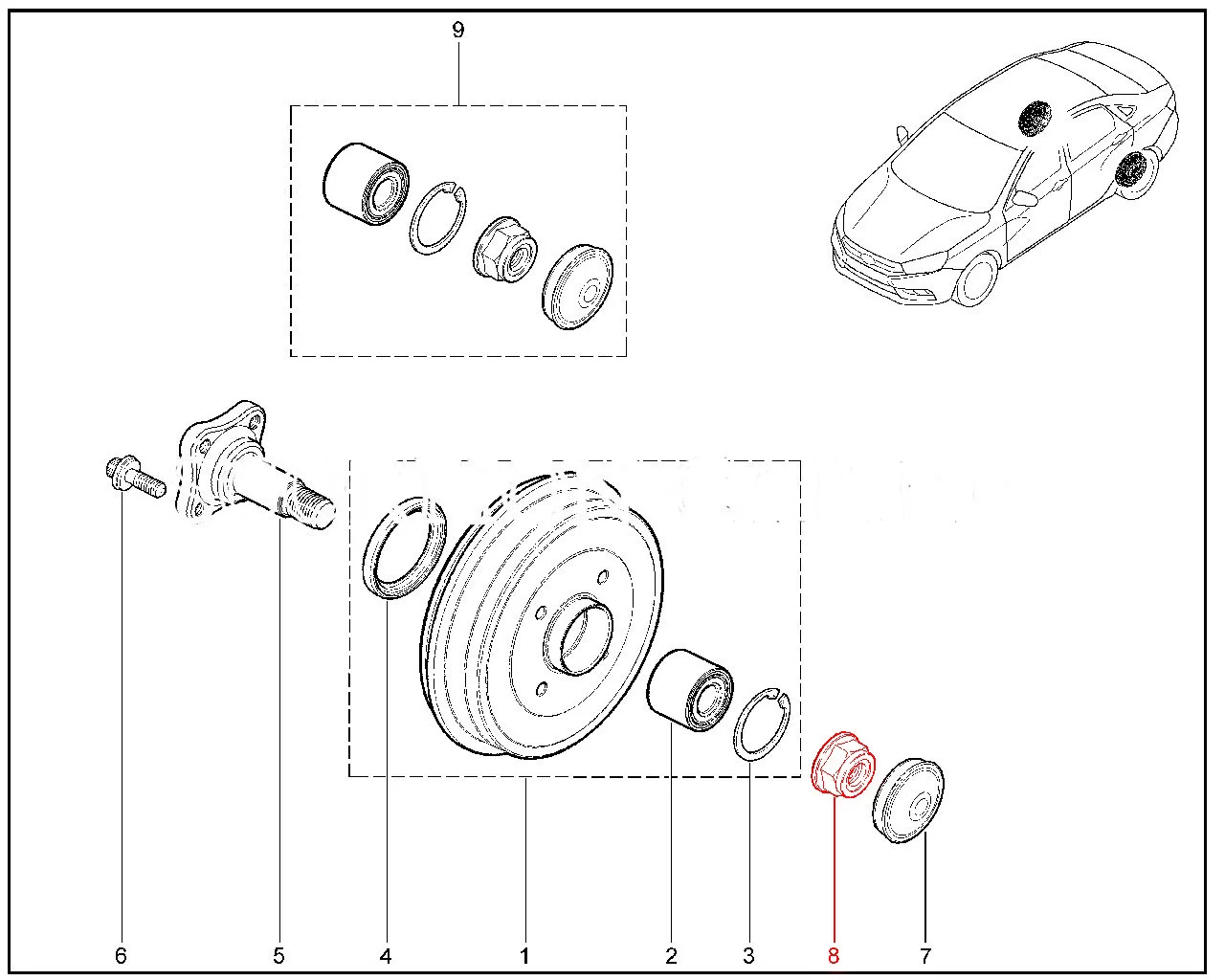 Штатная оригинальная гайка М20х150 самостопорящаяся с нейлоновой вставкой задней ступицы для Lada Vesta, XRAY.
