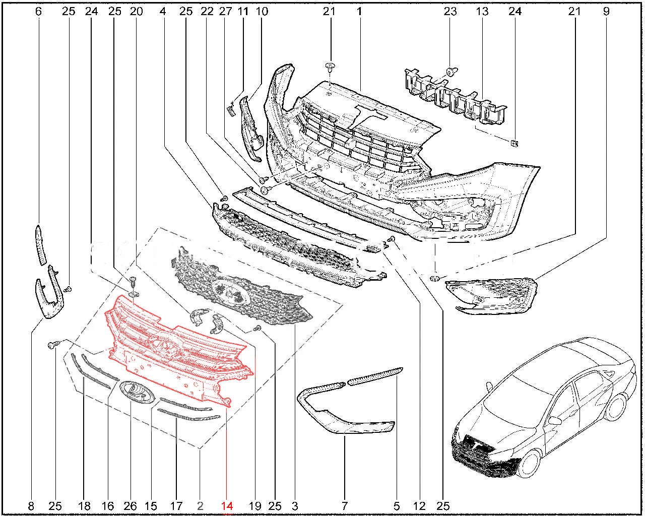 Штатная оригинальная накладка переднего бампера средняя для Lada Vesta.