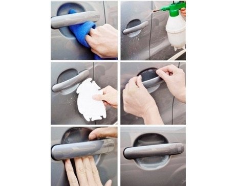 Комплект защитных плёнок от царапин под ручки дверей автомобиля. Данный комплект предназначен для защиты лакокрасочного покрытия пространства под ручками дверей от царапин.