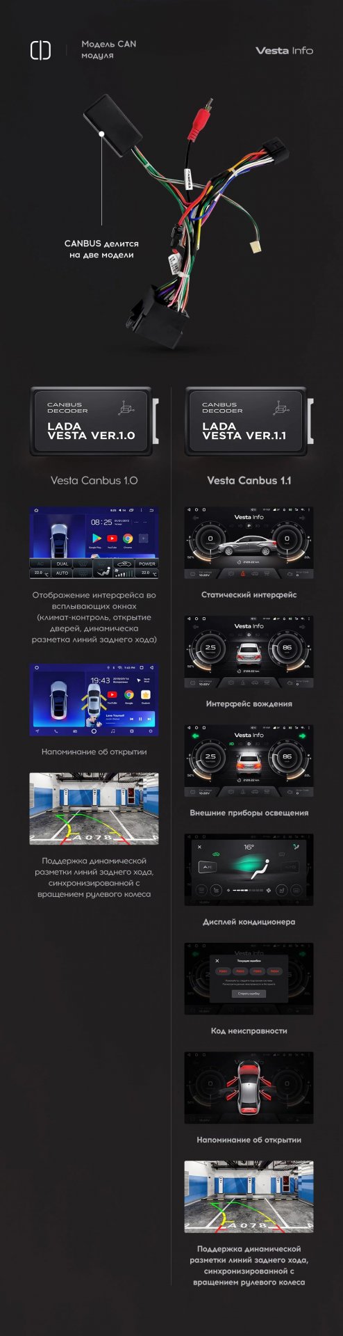 У части автомобилей есть возможность произвести настройку CAN шины для поддержания и управления рядом функций, таких как управление кнопками руля, информация об открытии дверей, отображение заднего хода, климат контроля и пр. После установки CAN BUS, можно будет полноценно пользоваться всеми функциями устройства.