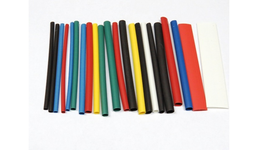 Набор термоусадочных трубок состоит из заранее нарезанных нескольких видов термоусадки. Диаметр трубки после усадки уменьшается в два раза. Трубки в нарезке по 10 см.