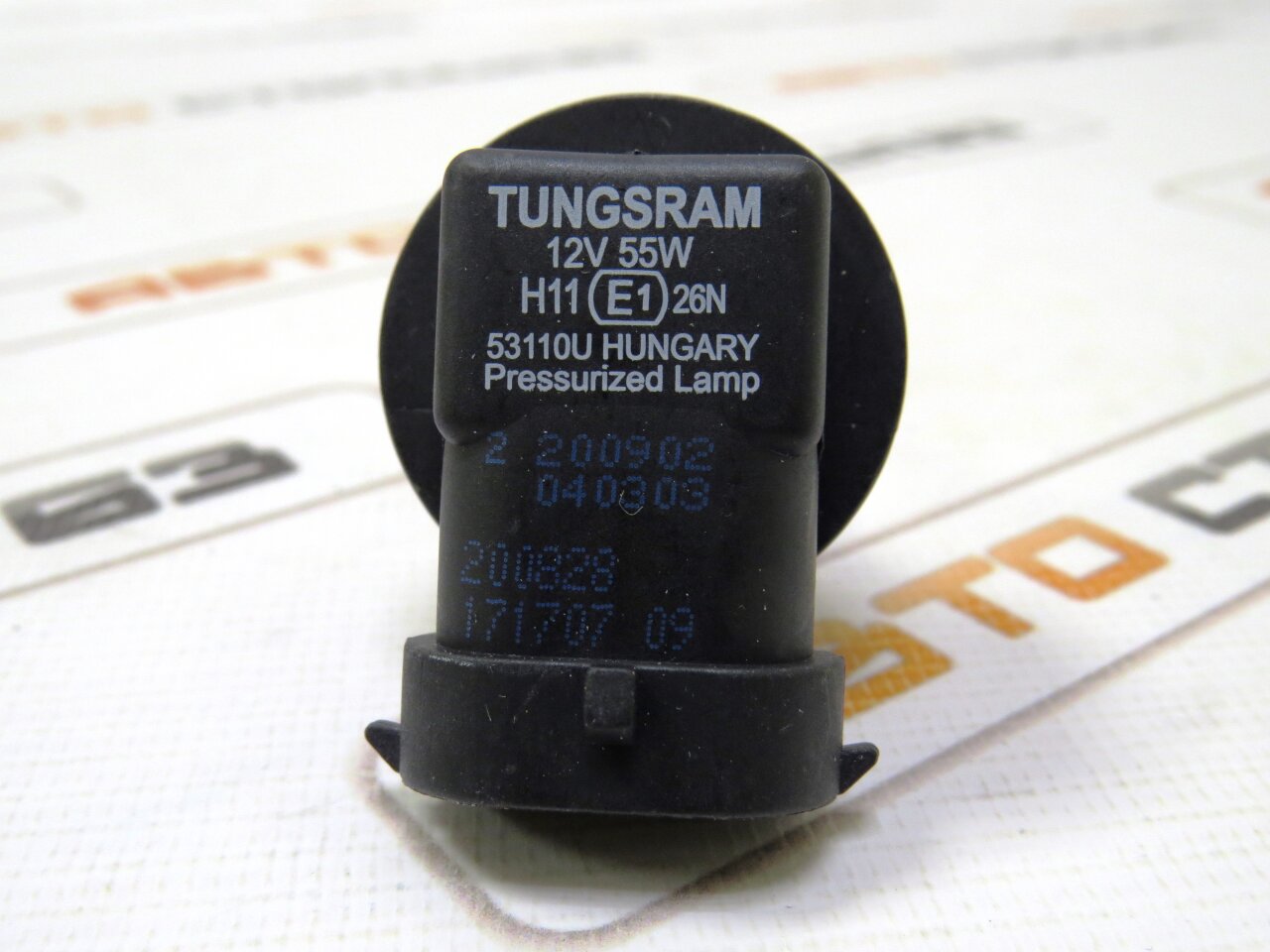 Автолампа галогенная от производителя TUNGSRAM. Цоколь H11, мощность 55 Вт, напряжение 12 В, световой поток 1350 Лм.