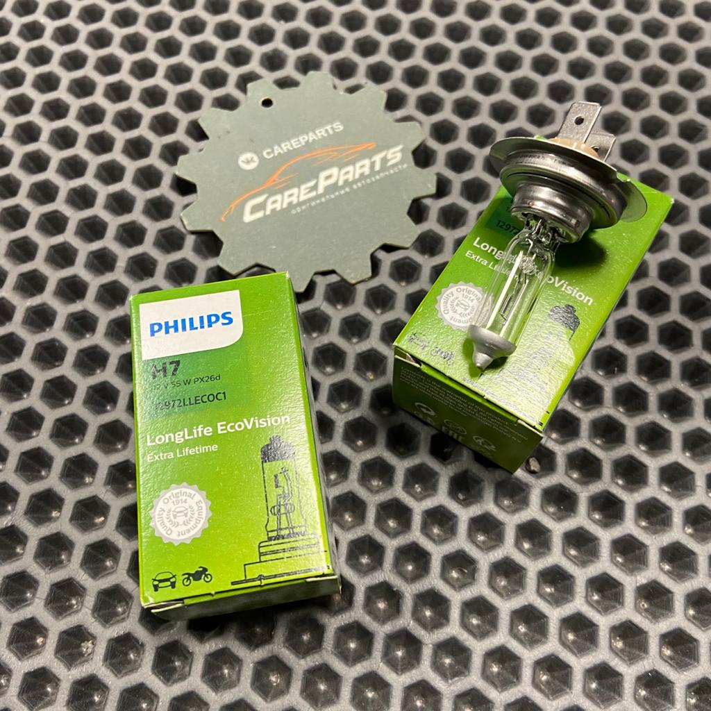 Галогеновая лампа c цоколем H7 мощностью 55Вт серии LONGERLIFE ECOVISION - Увеличенный, 4-х кратный срок службы по сравнению со стандартными лампами.