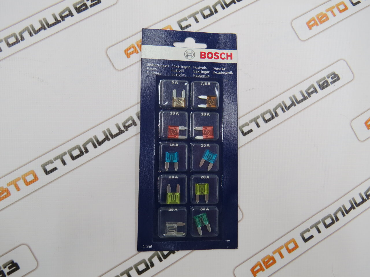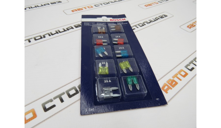 Набор плавких плоских предохранителей Мини (BOSCH) с разным номиналом.