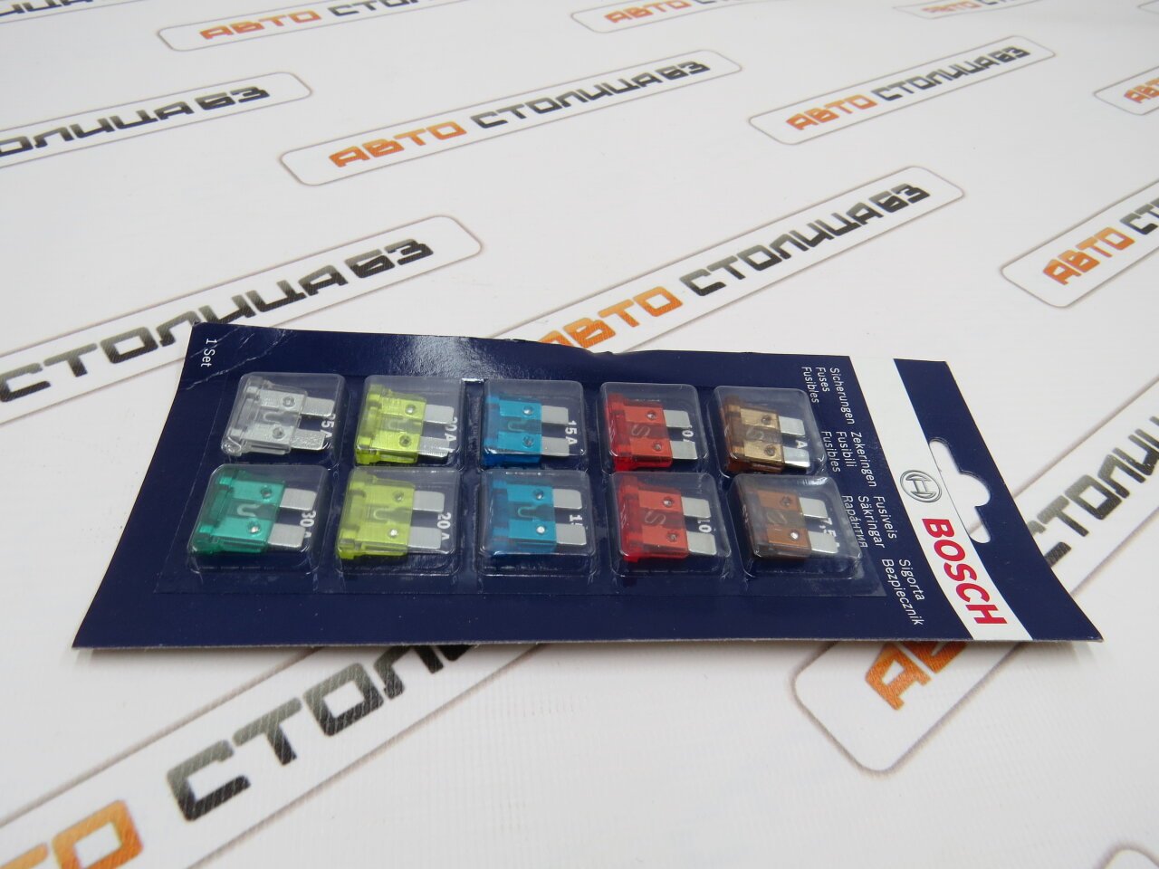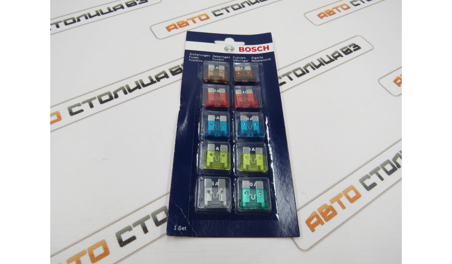Набор предохранителей Norm (10 шт.) BOSCH (размер Стандарт) с разным номиналом.