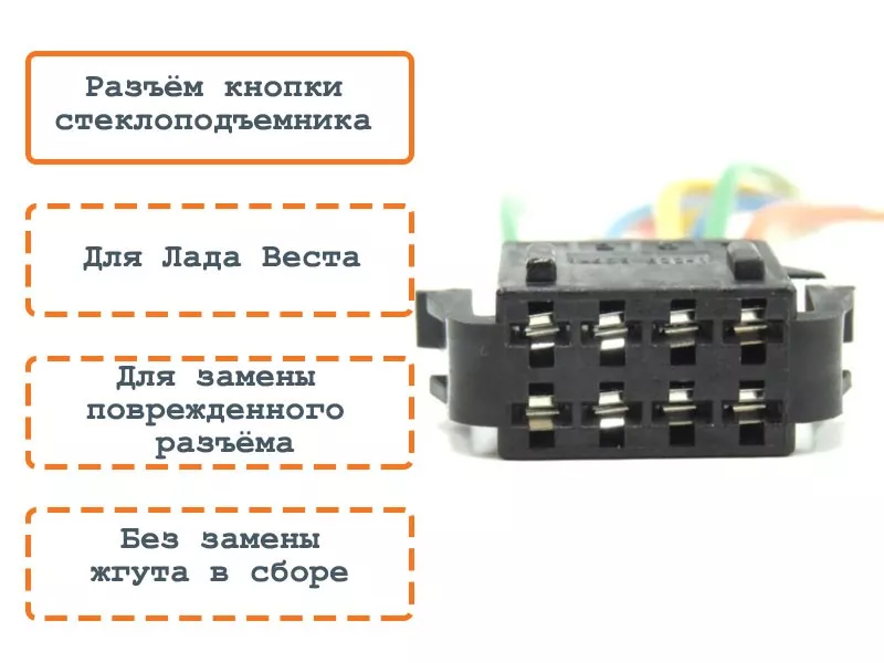 Чтобы получить оригинальный разъем кнопки стеклоподъемников, нужно купить жгут проводки двери в сборе, так как отдельно оригинальный разъем не поставляется. , Мы предлагаем аналог данного разъема, который идеально подойдет вам вместо оригинального. Разъем собран качественно и не уступает оригиналу.