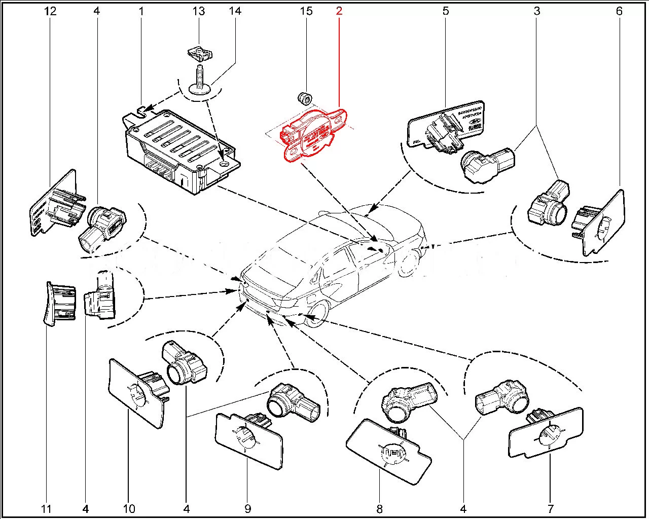 Штатный сигнализатор система парковки (парктроника) для нового поколения Лада Веста и Ларгус.