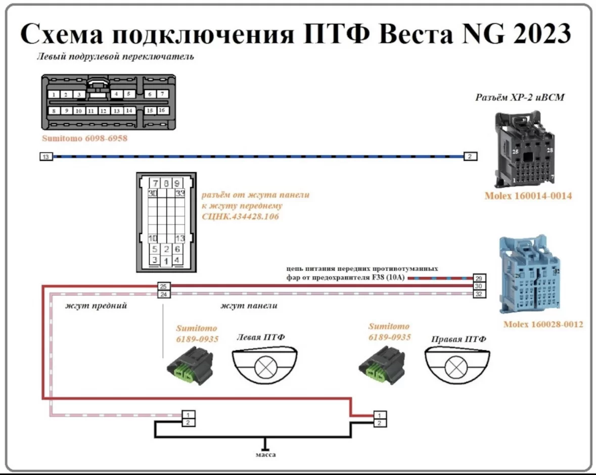 Комплект проводки для подключения передних птф на Lada Vesta NG (по штатной схеме через блок ubcm).