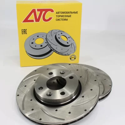 Диски тормозные передние перфорированные с проточками ATC для ЛАДА Веста, Ларгус и Иксрей (комплект).