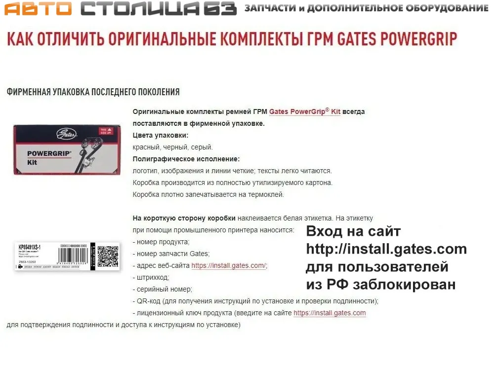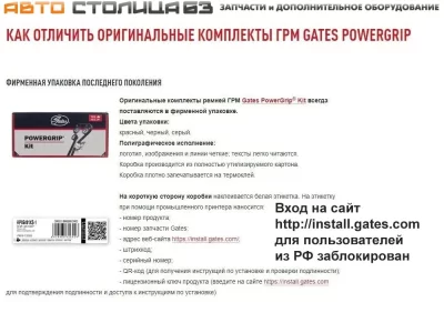 Подлинность комплектов проверяется на сайте компании Gates (вход для пользователей из РФ заблокирован). По вашему запросу мы предоставим сертификат на товар.