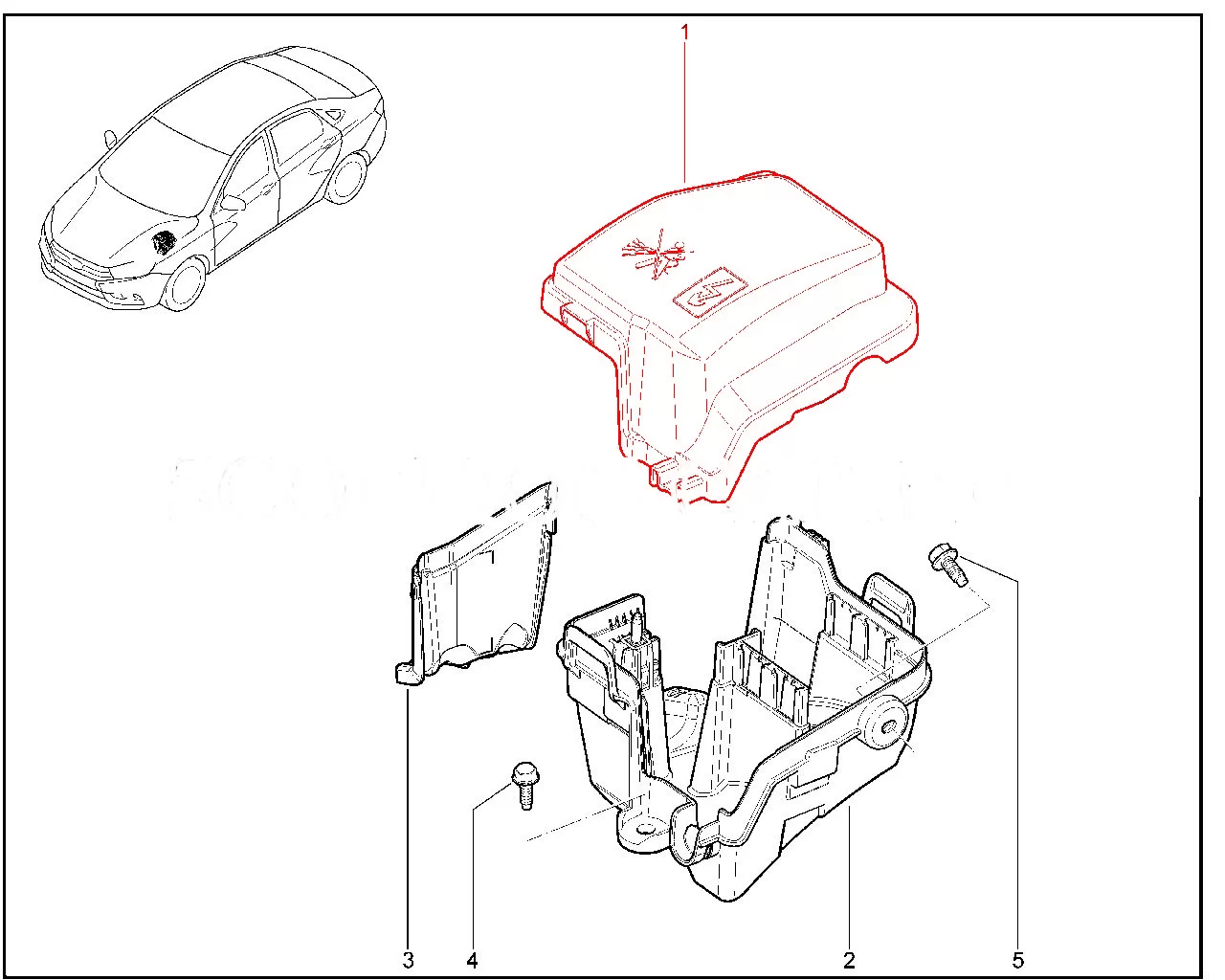Крышка монтажного блока моторного отсека (нов.обр.) для Лада Веста, Иксрей, Ларгус (оригинал).