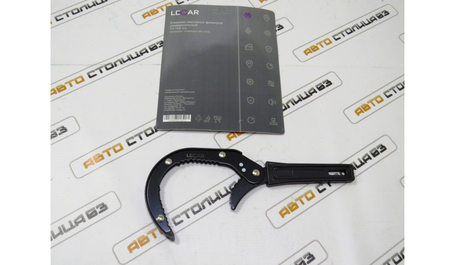 Съемник зажимной универсальный для масляных фильтров размером от 70 до 108мм. Материал - углеродистая сталь.