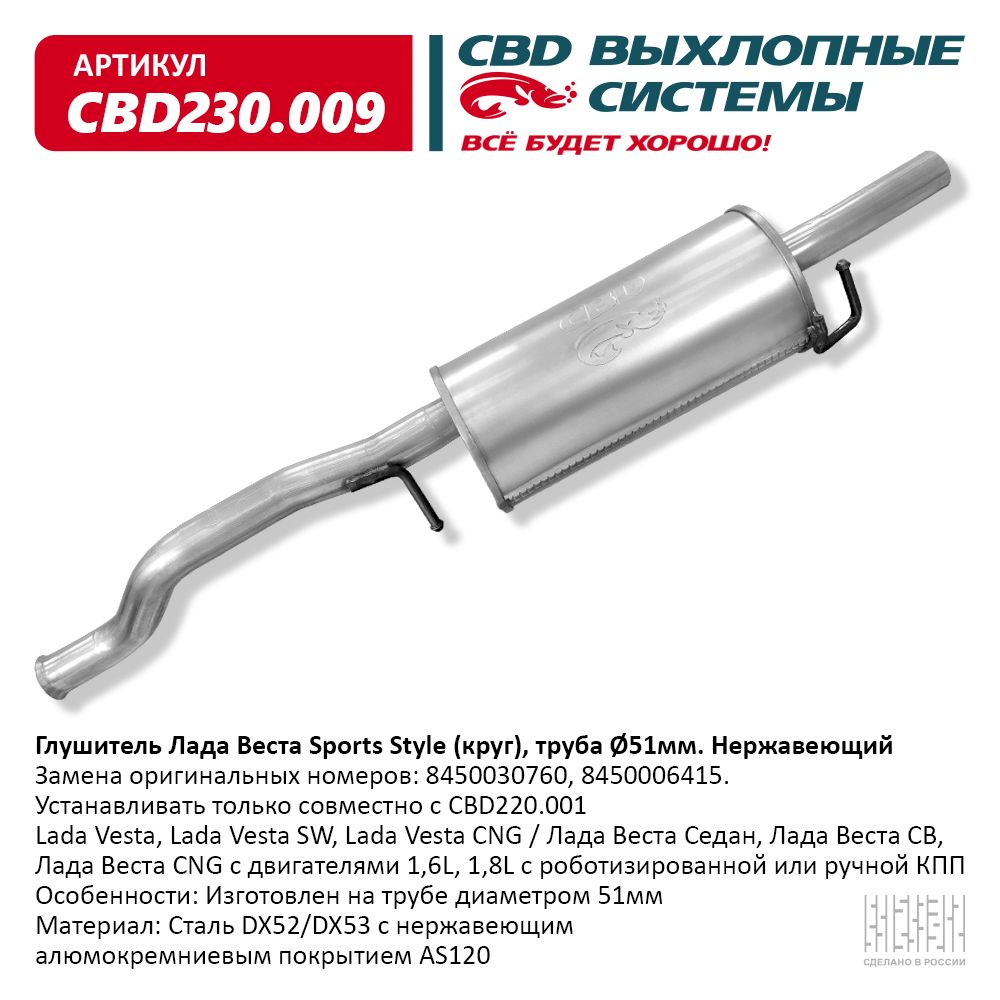 Глушитель Лада Веста Sports Style (круг), труба Ø51мм. Нержавеющий.