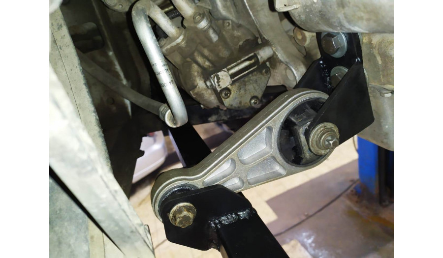 Нижняя передняя опора двигателя для Весты. В качестве подушки используется гитара от Приоры 2. Уголки и кронштейны выполнены из 6 мм металлопроката, труба 40х20 толщиной 3мм. Опора подойдет для автомобилей Лада Веста с двигателями ВАЗ 21129 1,6л и 21179 1,8л.