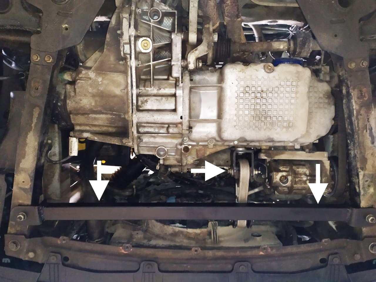 ВАЖНО: Установка не помешает защите картера, но для установки этой опоры необходимо просверлить 2 отверстия в боковых лонжеронах.