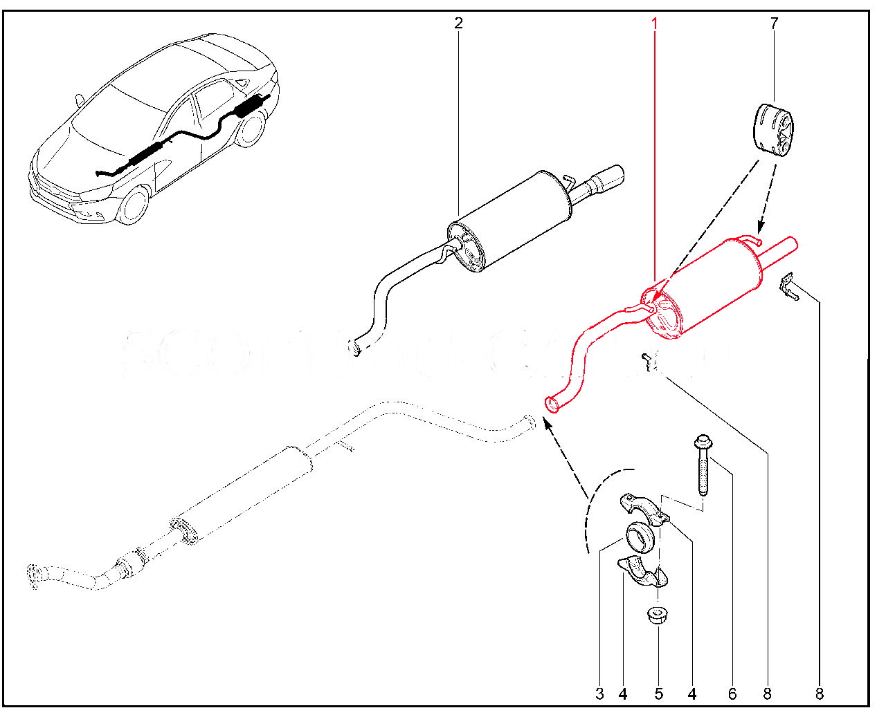 Глушитель основной в сборе окрашенный старого образца (применяется до апреля 2017) для Лада Веста.