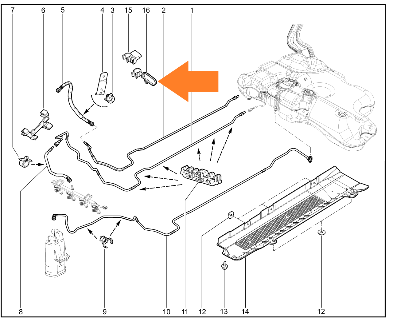 Оригинальный хомут с фиксатором для топливной трубки Лада Веста и Хрей с двигателем ВАЗ 21179 1.8л.