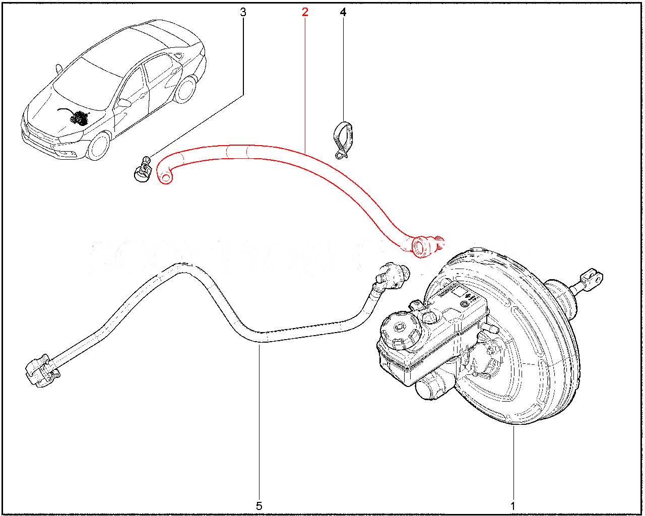Шланг вакуумного усилителя тормозов в сборе для для Лада Веста, Иксрей и Ларгус.