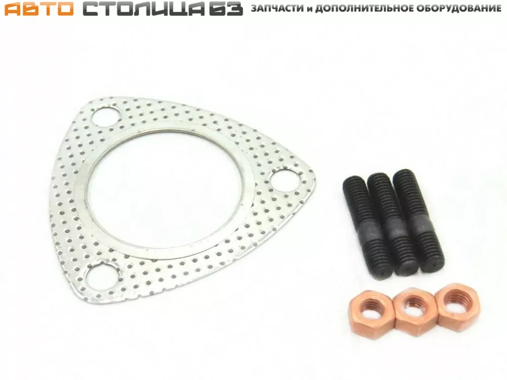 Данный ремкомплект может вам понадобиться при отсоединении приемной трубы от средней части глушителя, так как в этом месте очень много грязи и большие разности температур, прокладка при её снятии разваливается, а шпильки не выдерживают прикипевших гаек и ломаются.