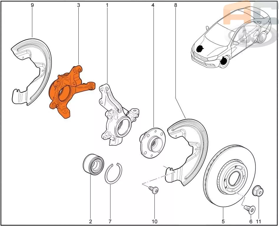 Штатный заводской правый поворотный кулак для автомобилей Лада Веста (все) и Хрей (только Кросс-версия).
