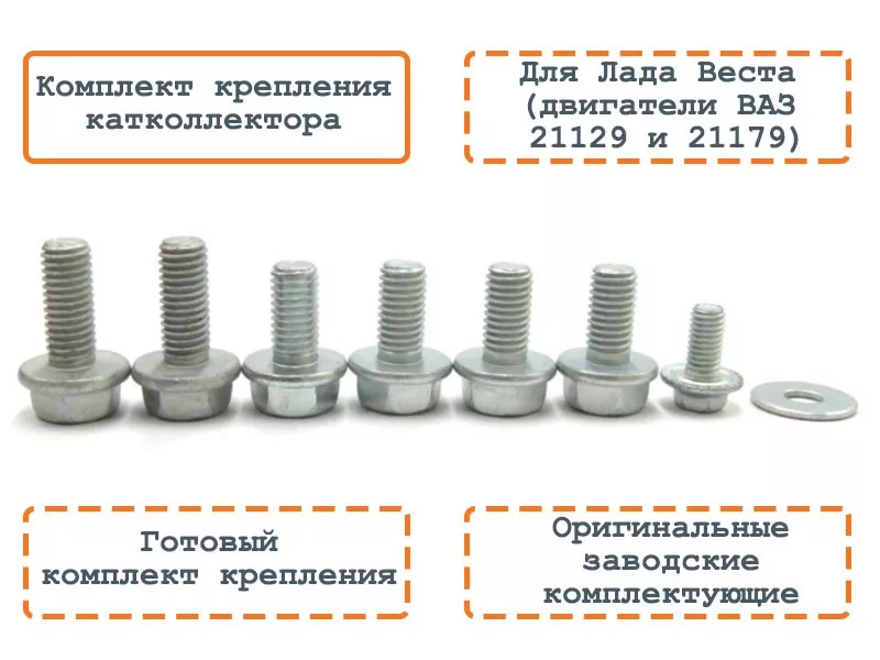 Комплект крепления экрана катколлектора для автомобиля Лада Веста с двигателями ВАЗ (1,6л 21129 и 1,8л 21179).