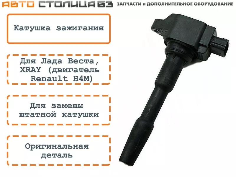 Оригинальная заводская катушка зажигания для автомобилей Лада Веста и Хрей с двигателем Renault H4M (HR16). Непосредственным производителем катушек зажигания является компания ELDOR (Италия).