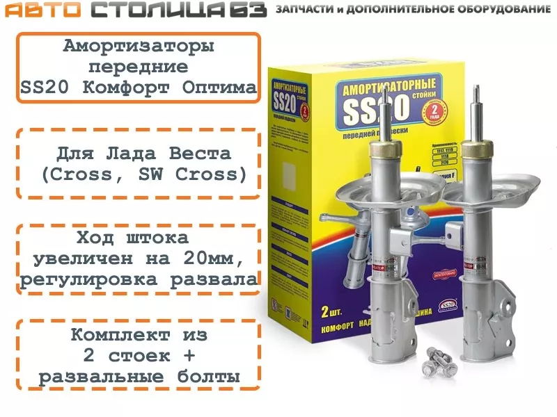 Комплект передних амортизаторов для автомобилей Лада Веста (седан Кросс, универсал Кросс). Стоимость указана за комплект из 2 стоек и 2 развальных болтов.