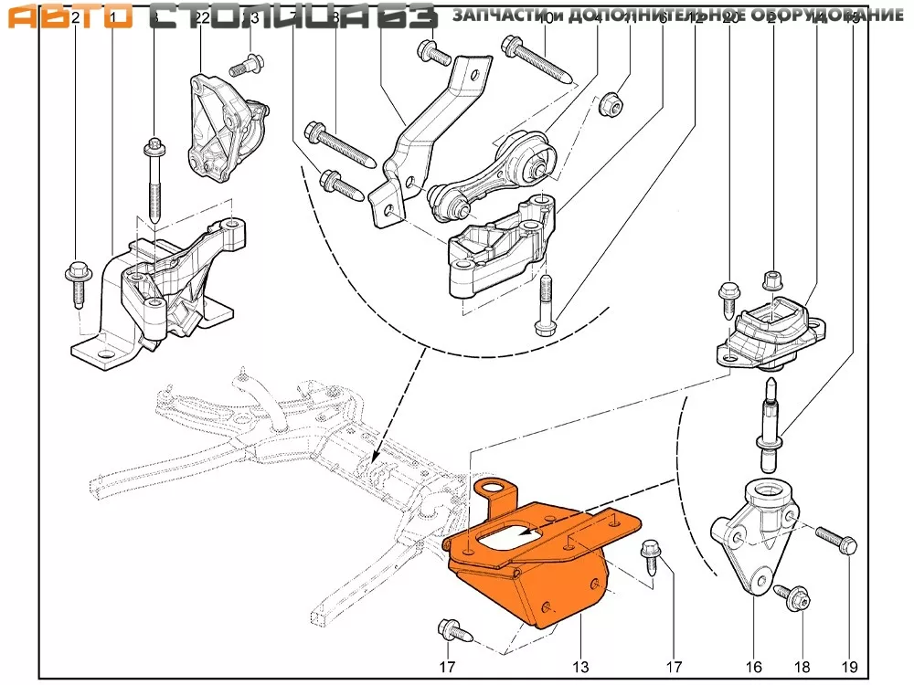 Оригинальный левый кронштейн подвески двигателя для автомобилей Лада Веста с двигателем Renault H4M / HR16. Применяется для замены изношенного или поврежденного штатного кронштейна.