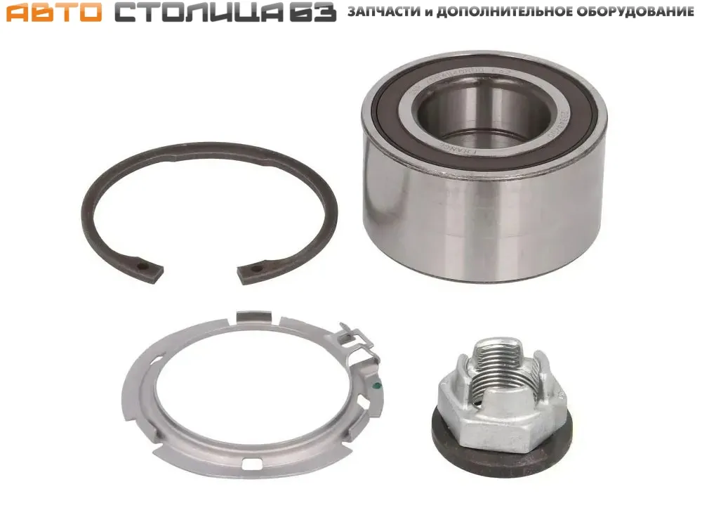 В комплекте подшипник, стопорное кольцо, гайка, кольцо АБС.