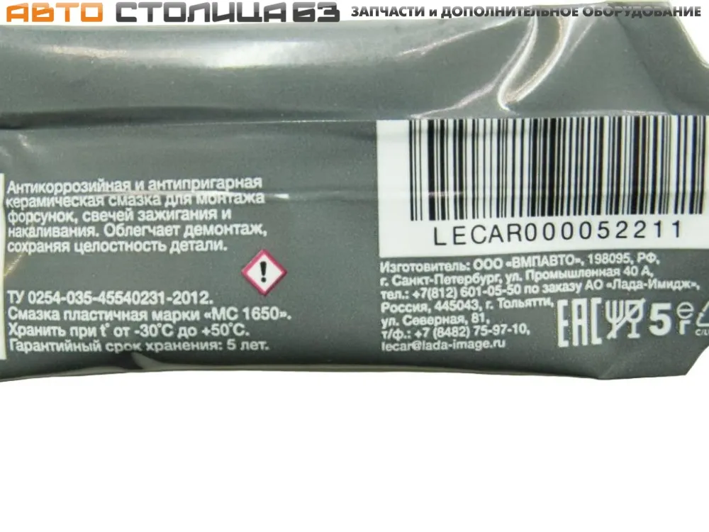 Смазка для свечей и форсунок LECAR. Смазка пластичная марки “МС 1650”.