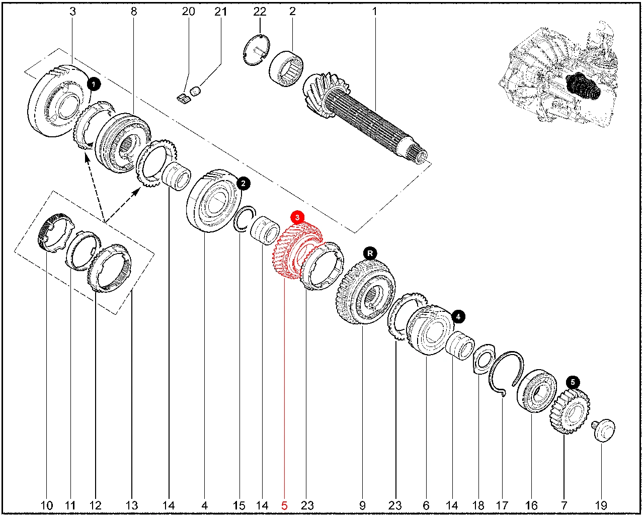 Штатная оригинальная шестерня 3 передачи вторичного вала (КПП Renault JR5) для Lada Vesta, XRAY, Largus.