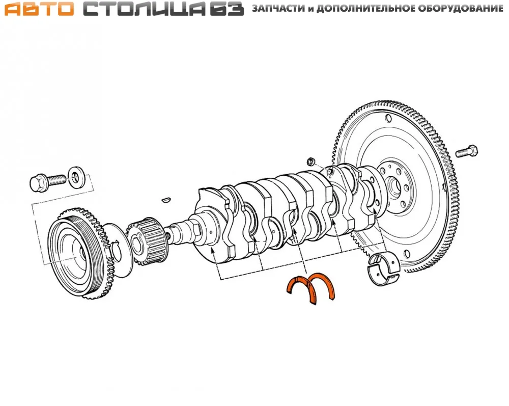 Полукольца удерживают коленвал от осевого смещения или продольного люфта. По сути, это подшипники специального типа, устанавливающие необходимый зазор. Полукольца ремонтного размера устанавливаются взамен стандартных, при износе контактных поверхностей коленчатого вала.
