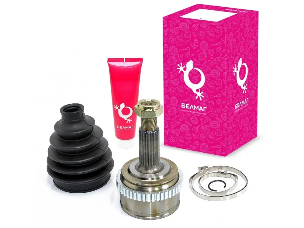В наружных ШРУСах «БелМаг» применена классическая конструкция с сепаратором и шариками. Шарнир этой конструкции работает как коническая шестеренка, но вместо зубьев шестеренки, передающих момент кручения по шарниру, используются шарики, которые действуют на свои дорожки во внутреннем и наружном корпусах.