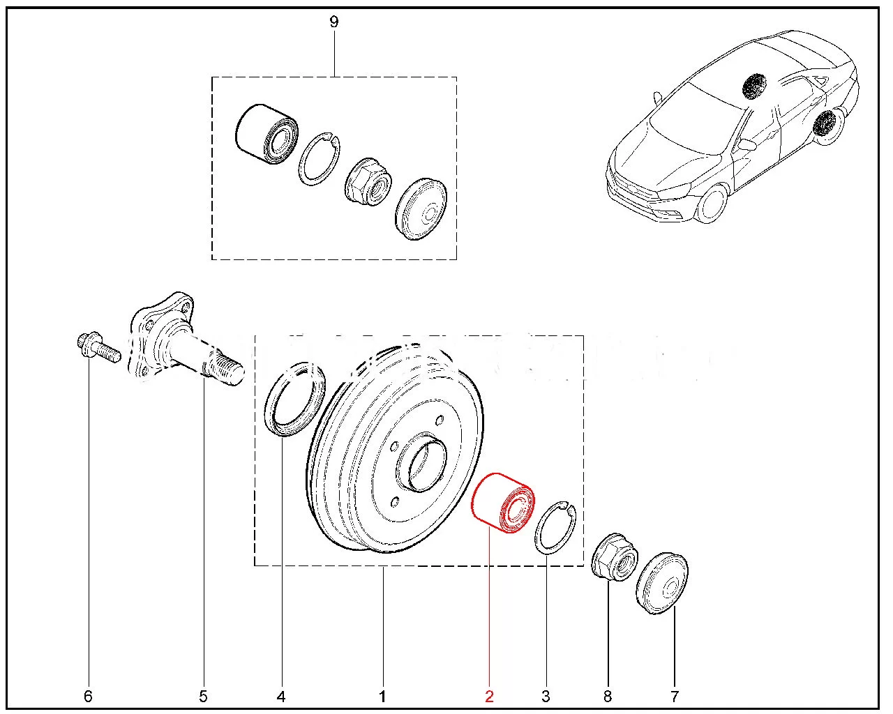 Штатный оригинальный подшипник ступицы заднего колеса для Lada Vesta, XRAY, Iskra.