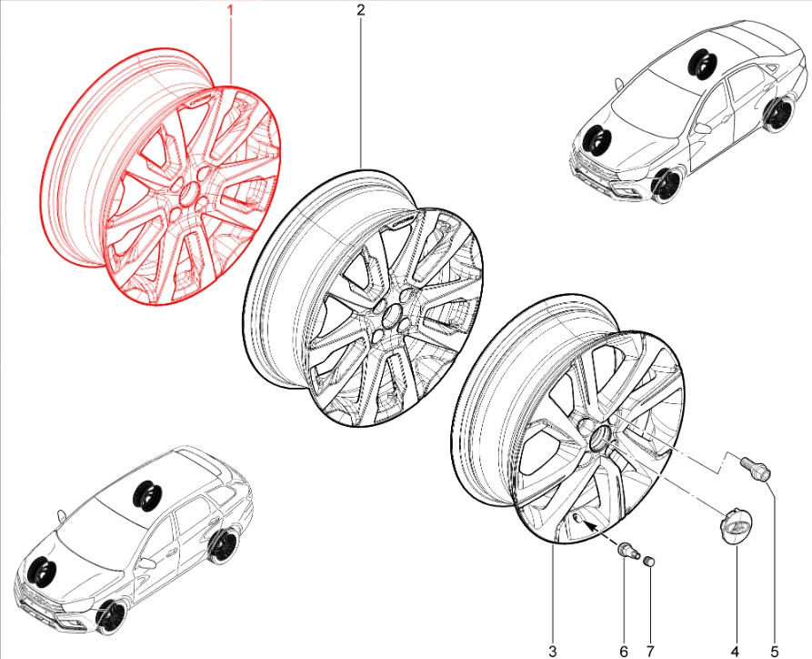 Штатное оригинальное колесо литое 6Jx16H2 8450040639 для Lada Vesta NG.