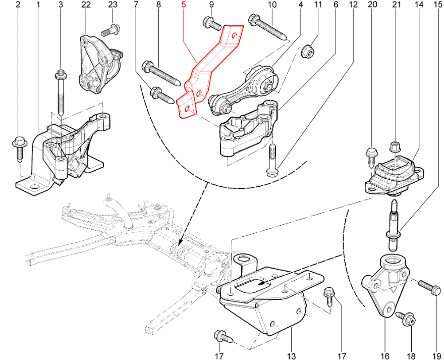 Штатный оригинальный усилитель кронштейна задней опоры подвески двигателя Renault для Lada Vesta.
