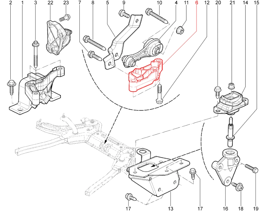 Штатный оригинальный кронштейн задней опоры подвески двигателя Renault для Lada Vesta.