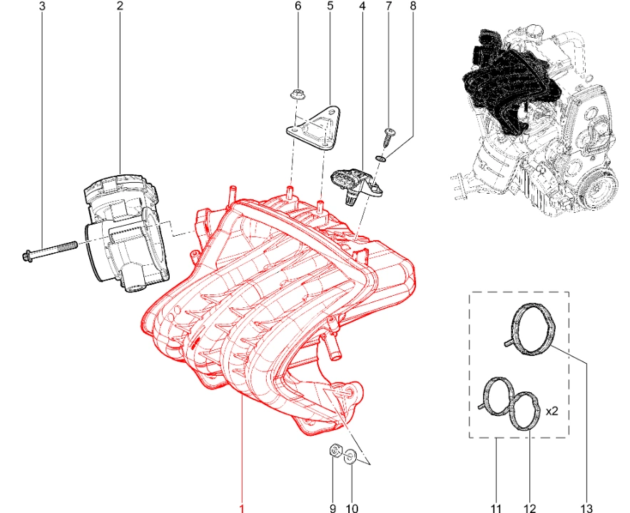Оригинальный штатный модуль впуска в сборе двигателя ВАЗ 11182 для Lada Vesta, Largus, Granta.